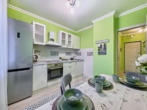 Здесь легко расслабиться после насыщенного дня: заварите чай на светлой кухне с зелёными акцентами, устройтесь на диване или в удобной кровати и почувствуйте себя как дома уже через несколько минут после заселения.