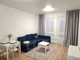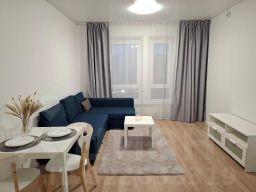 Сдаётся УЮТНАЯ, СВЕТЛАЯ квартира с ПАНОРАМНЫМ видом из окон. Продуманная планировка. Просторная кухня гостиная (20 кв.м) со всей необходимой техникой и мебелью. Кухонная зона, укомплектована кухонной мебелью и техникой (холодильник, варочная панель, и микроволновая печь), в гостиной зоне расположен большой диван, тумбочка, стол, тумба. Изолированная спальня (12 кв.м) с двуспальной кроватью и комодом. Из окон открывается красивый вид. С/у совмещенный, установлена стиральная машина. В прихожей вместительный зеркальный шкаф. Чистый подъезд. Четыре лифта. Вся инфраструктура рядом. До метро 12 минут пешком. Остановка автобуса прямо коло дома. На первых этажах различные магазины, салоны красоты, уютные кафе. Ищем арендатора 1-2 человека, можно с ребенком. Можно с одной маленькой собакой. Курить в квартире запрещено