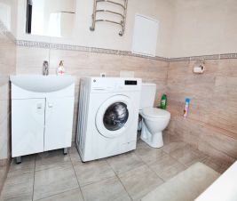 Также вся необходимая бытовая техника холодильник, плита, микроволновка, стиральная машина, фен, телевизор, утюг - удобно для длительного проживания и деловых поездок.