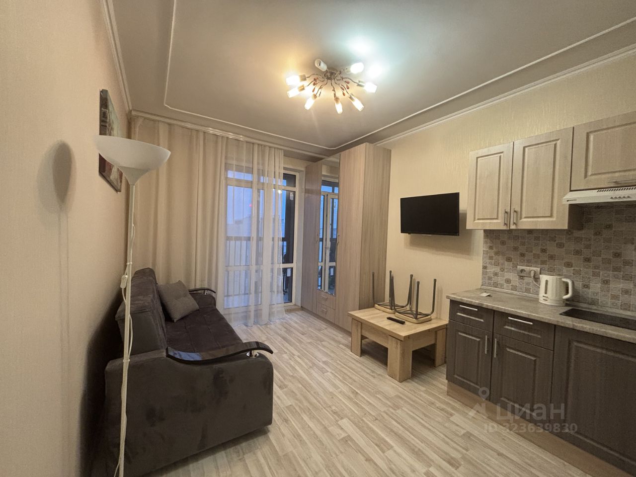Сдаётся отремонтированная просторная студия 26 кв.метров на 12-м этаже 16-ти этажного монолитного дома в новом современном районе ЖК "Испанские кварталы". Сдается на длительный срок. Студия оснащена мебелью и всей бытовой техникой, большой стол-трансформер, новый диван.