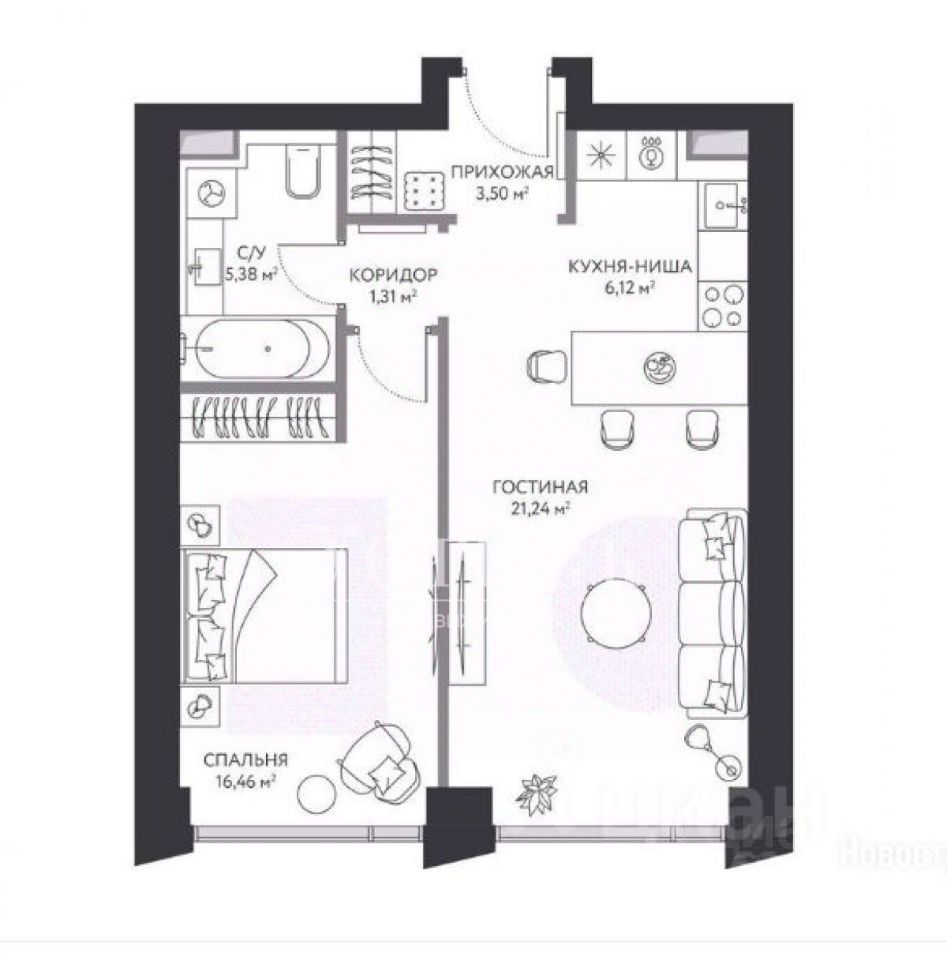 - гостиную-кухню