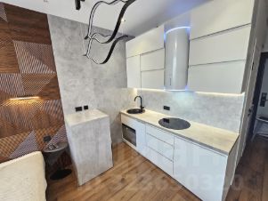 Внутри вас ждет дизайнерский ремонт, который подчеркивает современный стиль и комфорт. Студия оборудована всем необходимым: кондиционер, холодильник, посудомоечная и стиральная машины, а также телевизор. На кухне и в комнате есть мебель, что делает это предложение особенно удобным для быстрого заселения. Санузел совмещенный, с душевой кабиной.