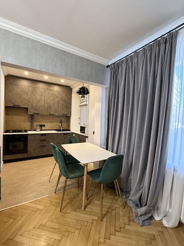 Удобная и функциональная планировка. Дизайнерский ремонт. Кухня-гостиная, изолированная спальня, и большая комната под гардероб. Окна выходят, как на улицу, так и во двор.