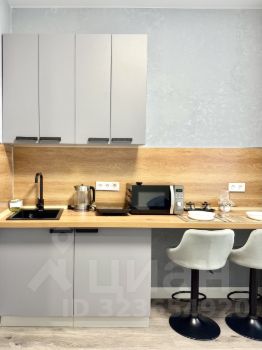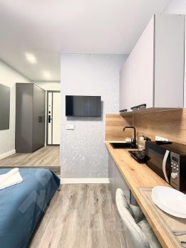 Оборудованная мини-кухня (холодильник, варочная панель, микроволновая печь, электрический чайник).