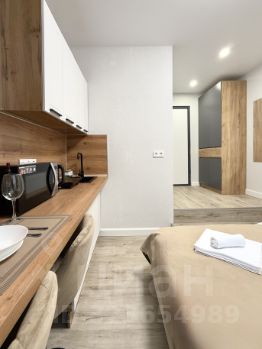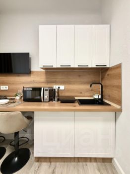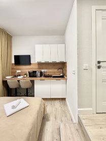 Оборудованная мини-кухня (холодильник, варочная панель, микроволновая печь, электрический чайник).