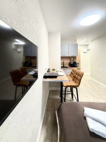 Добро пожаловать в новую стильную студию в пешей доступности от метро Дмитровская! Квартира-студия подходит для проживания 1-2 гостей. Возможна долгосрочная аренда. К Вашим услугам: Бесконтактное заселение 24/7. Гарантированное безопасное онлайн-бронирование. Качественная уборка студии после каждого выезда. Бесплатная парковка поблизости и платная парковка во дворе. Оснащение студии: Двуспальная кровать и белоснежное постельное белье. Оборудованная мини-кухня (холодильник, варочная панель, микроволновая печь, электрический чайник). Набор посуды и столовых принадлежностей. Бесплатный Wi-Fi. Стиральная машинка, фен, утюг, гладильная доска, сушилка для белья. Комплект махровых полотенец. Шампунь, гель для душа, жидкое мыло, одноразовые тапочки. ПРАВИЛА комфортного проживания: При заезде необходимо предоставить фото паспорта. Дети до 5 лет проживают бесплатно (без предоставления дополнительного спального места). При долгосрочном бронировании уборка, замена постельного белья и полотенец осуществляется бесплатно каждые 7 дней. Курение строго запрещено. При несоблюдении запрета из страхового депозита удерживается штраф в размере 2500 рублей. Шумные мероприятия, вечеринки, громкое прослушивание музыки и другого шума запрещены. При нарушении данного правила, мы имеем право на выселение без возвращения оплаты. Размещение с животными запрещено. Способы оплаты: Банковский перевод. Оплата наличными или другими способами недоступна. При заезде взимается страховой депозит в размере 2500 руб. за весь период проживания и возвращается Гостю после проверки состояния объекта размещения на предмет соблюдения правил проживания и сохранности имущества (после 16:00). Время заезда - 24/7 (При условии оплаты страхового депозита до 23:00) Время выезда - до 12:00 Будем рады ответить на ваши звонки и сообщения с 08:00 до 23:00. Желаем Вам приятного и комфортного отдыха!
