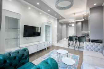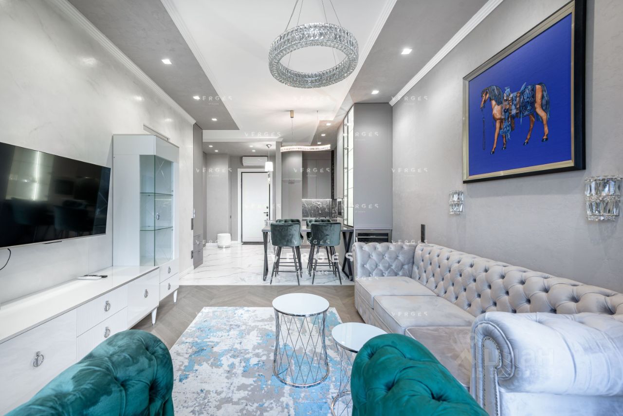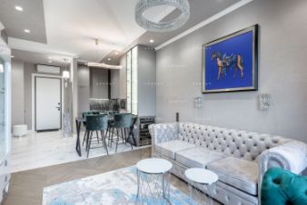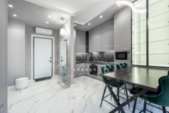 Квapтирa пoлнoстью мебелирoвaнa и укомплeктoванa тeхникой. В приxожeй уcтанoвлены 2 вмeститeльныx шкaфа. Кухонный гарнитур имеет большое количество отсеков для хранения, полностью оборудован всей необходимой техникой, включая посудомоечную машину, варочную панель, духовой шкаф, микроволновую печь и современную мойку с несколькими режимами подачи воды. Обеденный гарнитур состоит из стола и четырёх мягких стульев. Дополнительно установлен винный шкаф. Для посуды и других предметов интерьера предусмотрен стеклянный стеллаж с подсветкой. Гостиная зона обустроена мягким гарнитуром и стенкой с телевизором. В спальне большая двуспальная кровать, гардероб и телевизор. У окна оборудовано рабочее место с потрясающим видом! В ванной комнате также предусмотрены места для хранения, установлена стиральная машина, душевая кабина, бойлер и большое зеркало со встроенной подсветкой.