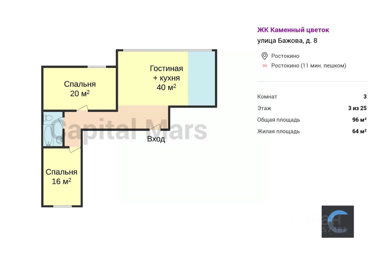 64 м²