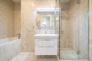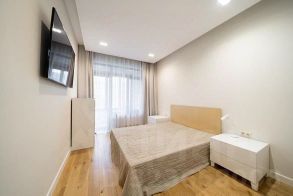 Современная мебель и техника: Все готово для заезда — диван, обеденный стол, 6 стульев, две кровати, комоды, шкафы, гардеробная, холодильник, посудомоечная, стиральная машины, кондиционер, ТВ, интернет, ванна и душевая кабина.