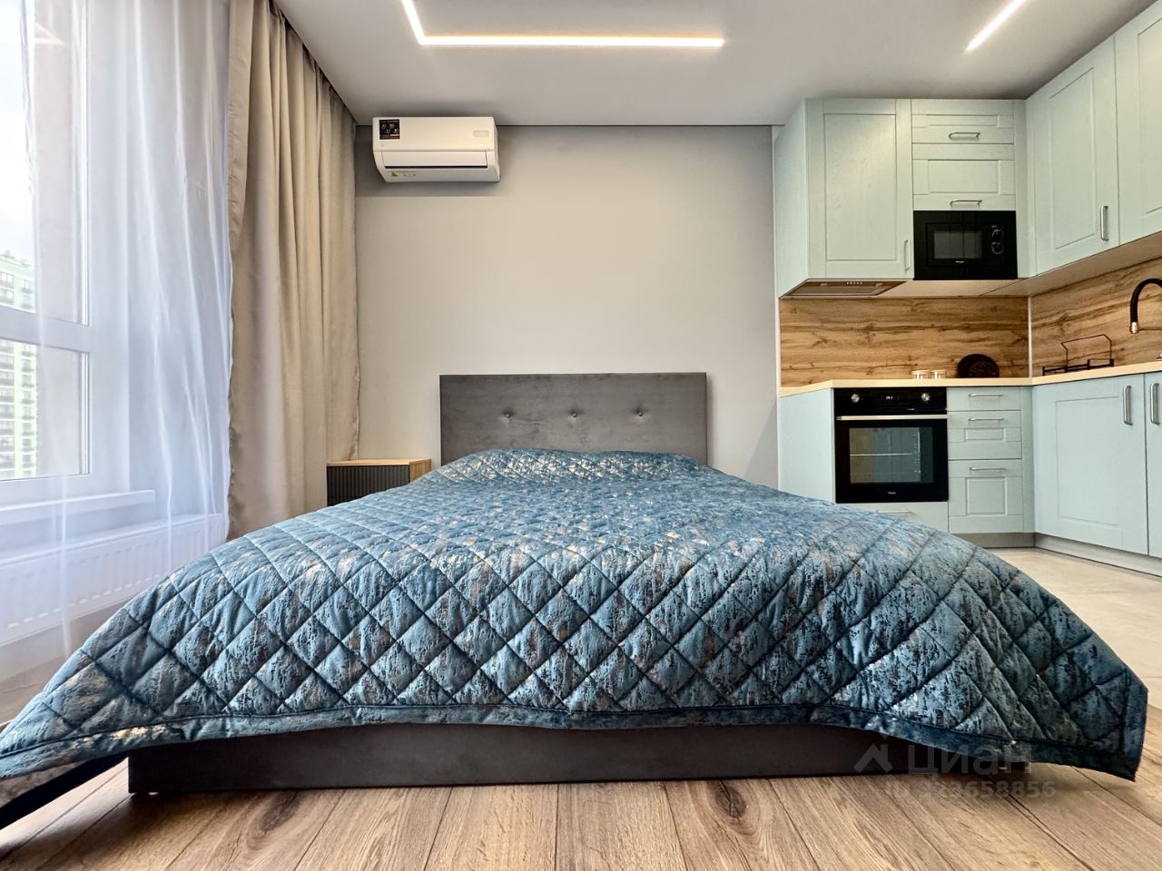 Сдаётся уютная студия в современном доме 2025 года постройки. Квартира расположена на 7-м этаже 22-этажного панельного здания. Общая площадь составляет 22 кв. м, а жилая площадь — 15 кв. м, кухня занимает 4.5 кв. м.