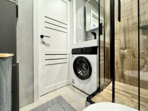 Квартира оформлена в дизайнерском стиле, что создаёт атмосферу комфорта и уюта. В студии есть вся необходимая мебель как на кухне, так и в комнате. Из бытовой техники в вашем распоряжении: кондиционер, холодильник, посудомоечная машина, телевизор и стиральная машина. Санузел совмещённый, с душевой кабиной, что добавляет удобства в повседневной жизни.