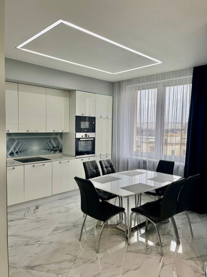 Квартира полностью укомплектована всем необходимым для комфортного проживания: холодильник, варочная панель, духовой шкаф, микроволновка, посудомоечная машина, стиральная машина, кондиционер, телевизор.