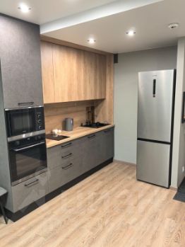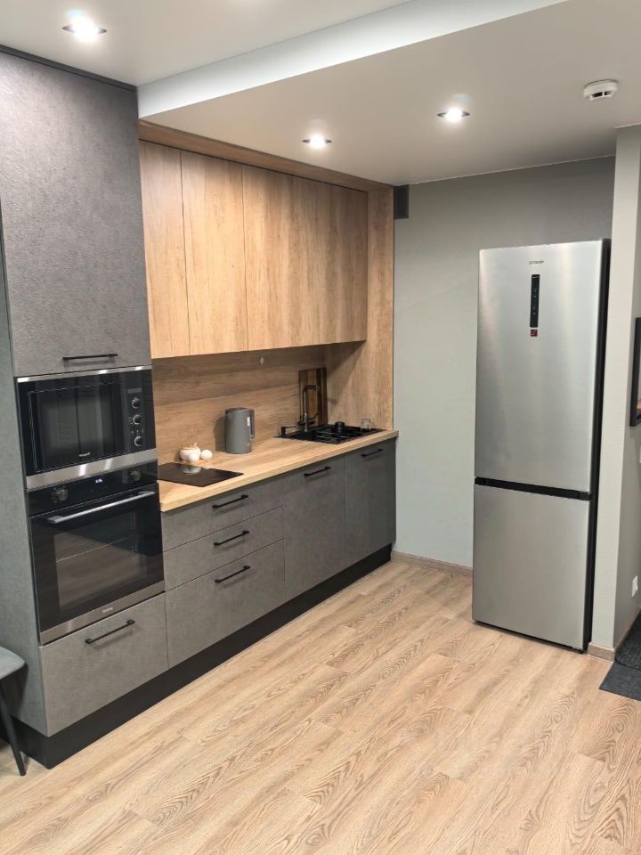 Квартира полностью укомплектована современной мебелью и техникой: стильный кухонный гарнитур, удобная двуспальная кровать и шкафы для хранения. В наличии , микроволновка, стиральная и посудомоечная машина, варочная панель и духовой шкаф.