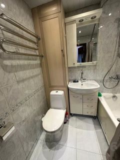 В квартире выполнен современный евроремонт. Просторная комната и кухня полностью меблированы, что позволит вам сразу заехать и наслаждаться комфортом. Из техники в вашем распоряжении: кондиционер, холодильник, посудомоечная машина, телевизор и стиральная машина. Санузел совмещенный, есть ванна. Также имеется большая застекленная лоджия с красивым видом, где можно устроить зону отдыха.