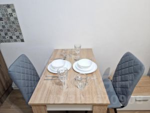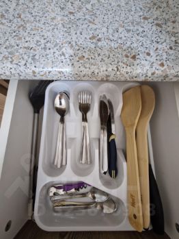 - Мини-кухня и вся необходимая техника: холодильник, кухонная плита, микроволновка, электрочайник, посуда, столовые приборы.