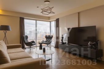 Трёхкомнатные дизайнерские апартаменты 104 м² с потолками 3,1 м расположены на высоком этаже клубного дома SOHO+NOHO — одном из самых престижных проектов Москвы.