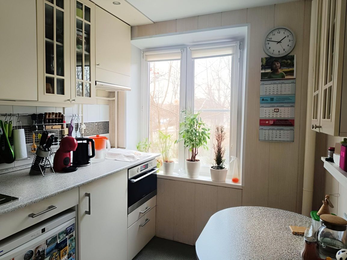 Квартира в хорошем состоянии. На кухне есть есть вся необходимая мебель и техника, в спальне — кровать и шкаф, а в ванной комнате — душевая кабина и стиральная машина. В большой комнате только большой шкаф-купе. Окна выходят во двор, что добавляет тишины и уединенности.