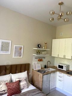 В студии есть все для комфортного проживания - телевизор, микроволновка, стиральная машина, оборудованная кухня с посудой, есть постельное белье, полотенца, фен для волос - заезжай и живи, ничего докупать не придется.