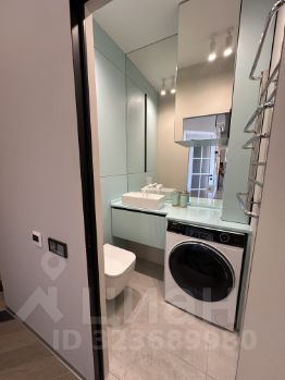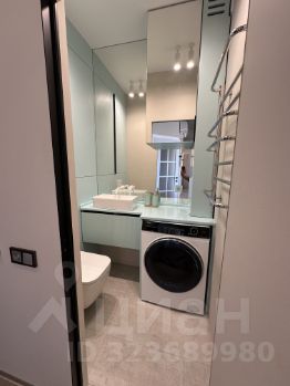 Прачечная выполнена в едином мятном стиле и располагает стиральной машиной с сушкой и гигиенической лейкой;