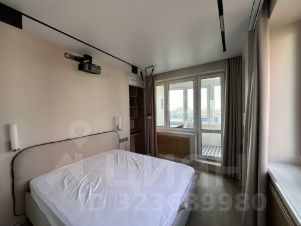 В спальню -1 ведет распашная стеклянная перегородка, что создает эффект расширения пространства и отсутствия туннельного эффекта. При необходимости закрывается шторами. встроенный шкаф мдф с удобным наполнением, письменный стол вдоль окна и стеллаж для книг.