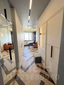 В коридоре встроенный зеркальный шкаф и ниша для ключей;