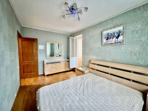 Две спальни по 14 кв м, в каждой большая лоджия. Гостиная 19 кв.м. Теплый пол. Вся бытовая техника в рабочем состоянии - стиралка, посудомойка, холодильник.