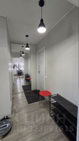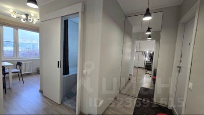 Балкон объединён с комнатой, что визуально расширяет пространство. В комнате удобно выделены две функциональные зоны: спальня и гостиная. На балконе - теплый пол. В коридоре зеркальный шкаф-купе.