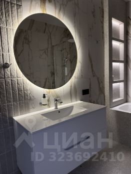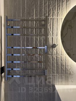 Санузел с теплым полом, разноуровневой подсветкой, вытяжкой, стиральной машинкой и полотенцесушителем.