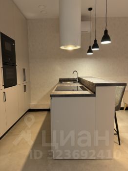 Квартира оборудована кухней со встроенной техникой: холодильник, духовой шкаф, микроволновая печь, посудомоечная машина, индукционная варочная панель и мощная вытяжка, фурнитура Blume.