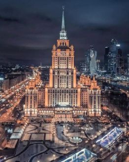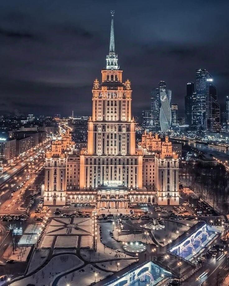В одной из семи сталинских высоток в центральной части расположилась гостиница Украина, а в боковых корпусах частные квартиры.