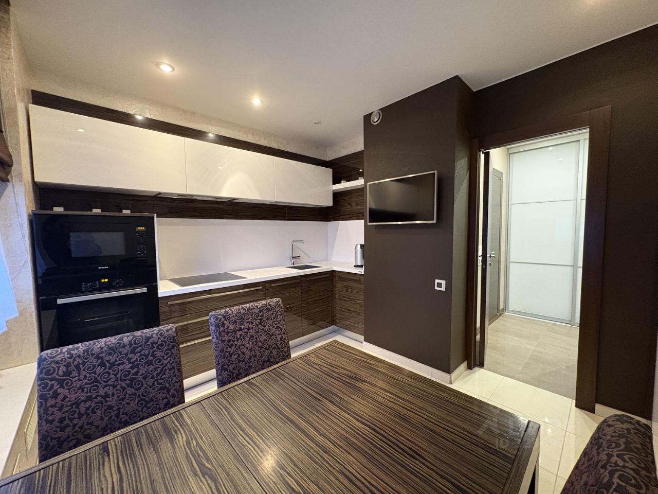 Квартира расположена на 17 этаже. В квартире есть вся необходимая мебель и техника (холодильник, стиральная и сушильная машина, посудомоечная машина, кондиционеры, кофе машина, телевизоры и тд) для комфортного проживания.