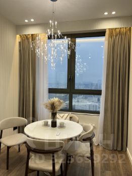 Сдаётся в аренду стильная двухкомнатная квартира с дизайнерским ремонтом. Общая площадь 60 кв. м, из них 40 кв. м — жилая, а кухня занимает 15 кв. м. Квартира расположена на 32-м этаже современного дома, построенного в 2024 году. Из окон открывается вид как на улицу, так и во двор.