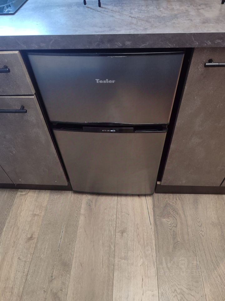 2. Кухня: кухонный гарнитур, обеденный стол, табуреты. Из техники холодильник, электроплита, микроволновка и вытяжка. Полный набор посуды и кухонных принадлежностей.