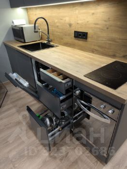 В студии: двуспальная кровать с ортопедическим матрасом и подъёмным механизмом, шкафы для хранения одежды, полноценная кухня с фильтрацией воды, посудомоечная машина, капсульная кофемашина, духовка, вытяжка, плита, микроволновая печь, холодильник, робот пылесос, tv, увлажнитель воздуха, стиральная машина, ванна.