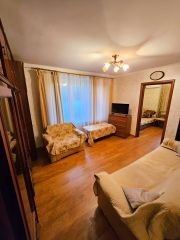 Сдаётся 2-х комнатная квартира на длительный срок! Квартира 38 м2, кухня 8 м2, совмещённый санузел, две смежные комнаты - 14 м2 и 8 м2. Квартира небольшая, но очень уютная для семьи из 3-х человек. Строго без домашних животных! В квартире хороший ремонт, мебель из натурального дерева - очень вместительная стенка, два гардероба, письменный стол, книжные стеллажи, два новых раскладывающихся дивана Аскона и одно кресло-кровать. Кухня 8 м2, оснащена всем необходимым, есть новый холодильник Whirlpool с системой no frost, микроволновка, газовая плита, стиральная машина. В каждой комнате есть телевизоры, есть кондиционер. В квартиру проведён интернет. Балкон остеклен, на нем есть также вместительные шкафы.
