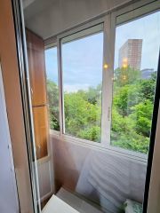 Окна квартиры выходят во двор, где много зелени. Рядом, в 2-ух минутах ходьбы, парк Дубки.