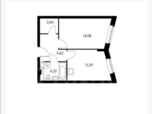 Площадь: 39 м² (кухня 12м², спальня 15м², гардеробная, с/у 4м²). Особенности:— Высота потолков 3 м, толстые стены.