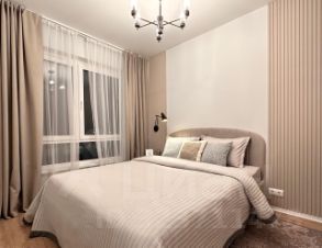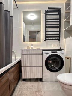 В квартире сделан современный евроремонт, что создаёт атмосферу уюта и комфорта. Комната и кухня меблированы, и есть вся необходимая техника: кондиционер, холодильник, посудомоечная и стиральная машины. Ванная комната оборудована ванной. Окна выходят во двор, поэтому в квартире тихо и спокойно.