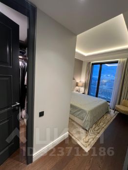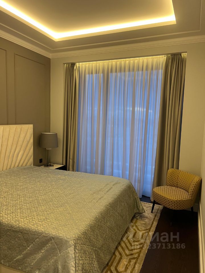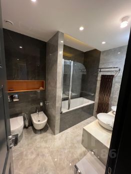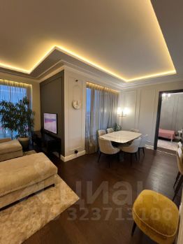 Квартира оформлена в дизайнерском стиле. Две спальни со своими санузлами плюс гостевой су в прихожей, техника включает кондиционер, холодильник, посудомоечную и стиральную машины, а также телевизор. Окна выходят на Ходынку, красивый вид, ничего не мешает