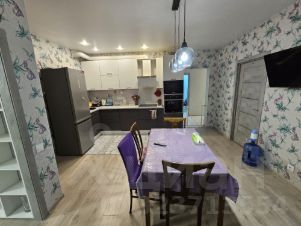 Сдаётся просторная трёхкомнатная квартира с евроремонтом в современном доме 2017 года постройки. Общая площадь квартиры составляет 95 кв. м, жилая — 45 кв. м, а кухня впечатляет своими 20 кв. м. Квартира расположена на 7 этаже 16-этажного панельного дома. Потолки высотой 2.8 метра создают ощущение дополнительного пространства. Окна выходят как во двор, так и на улицу, обеспечивая хорошее естественное освещение.