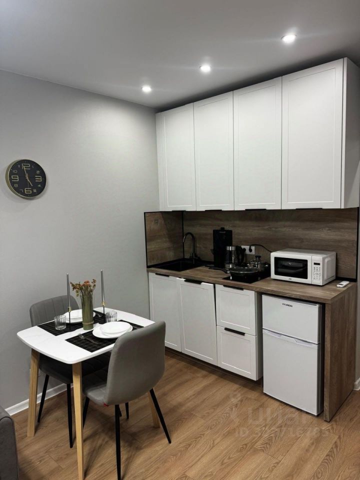 Общая площадь квартиры составляет 20 кв.м., кухня со всей необходимой техникой удобно совмещена с комнатой.
