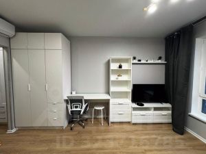 Мебель на фотографиях остается для вашего удобства, в комнате это удобный раскладной диван с ортопедическим основанием и механизмом лёгкого раздвижения одним движением, комод с ТВ и вместительный шкаф, письменный стол с креслом, а также кондиционер.