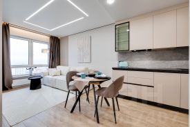 Планировка: отдельная спальня + кухня-гостиная, совмещённая с обеденной зоной.