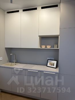 - кухня с доводчиками и шкафами для хранения в потолок;