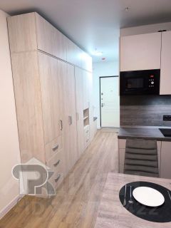 Id 387459. Студия с качественным ремонтом. Новая мебель Guter: встроенный кухонный гарнитур, шкафы для ранения, кровать трансформер. Хорошая абсолютно новая техника Hier и Kuppersberg: кондиционер, холодильник, стиральная машина, плазменный телевизор с большой диагональю, встроенная печь-гриль. Есть все необходимое для жизни влдоть до чайника и посуды. Заезжай и живи. Великолепный вид из окна. В ЖК огороженная территория, охрана, видеонаблюдение, парковка, СКУД. Отличная транспортная доступность до нескольких станций метро. Район зеленый, экологически чистый с хорошей развитой инфраструктурой.