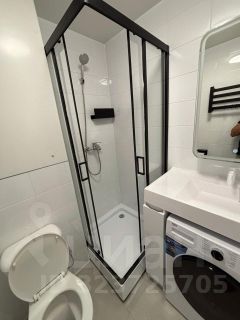 Санузел совмещенный с душевой кабиной.