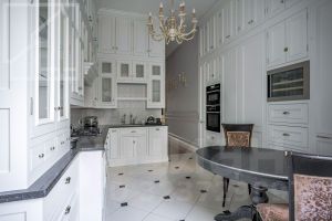 Планировка включает в себя гостиную-столовую, полностью оборудованную кухню, четыре спальни, два совмещенных санузла с ванной и душевой кабиной, гостевой санузел, постирочная и две гардеробные. Высокие потолки. Имеется пожарный вход. Зеленый благоустроенный район, недалеко находится французская школа. Квартира полностью оснащена всей мебелью и бытовой техникой для комфортного проживания.