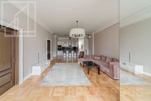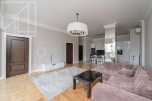 Планировка: просторная кухня-гостиная, мастер-спальня (включает большую гардеробную и совмещенный с/у с ванной и душевой), спальня, второй совмещенный с/у с душевой, постирочная. Квартира сдается после косметического ремонта. Квартира меблирована и укомплектована всей необходимой для жизни бытовой техникой. Из окон открывается шикарный вид на большой парк при МГУ.