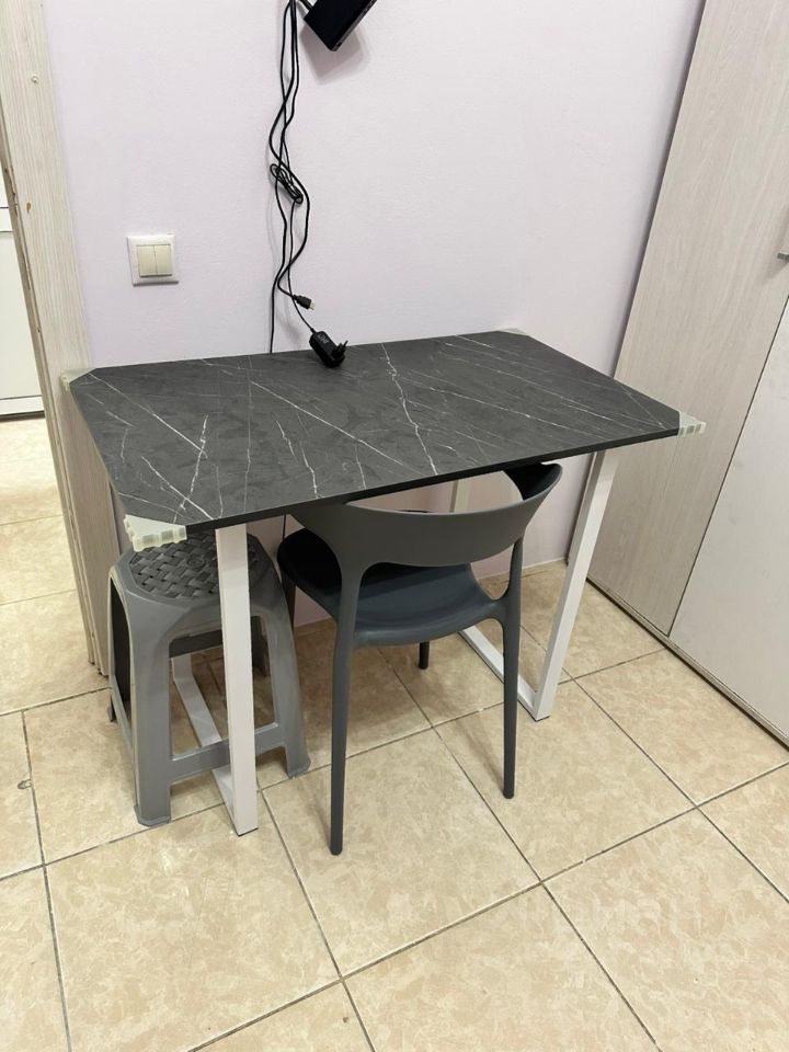 Квартира с косметическим ремонтом, поэтому вы сможете сразу заселиться и наслаждаться комфортом. В студии есть вся необходимая мебель, как на кухне, так и в комнате. Из техники в вашем распоряжении холодильник, телевизор и стиральная машина. Санузел совмещенный, оборудован современной душевой кабиной.