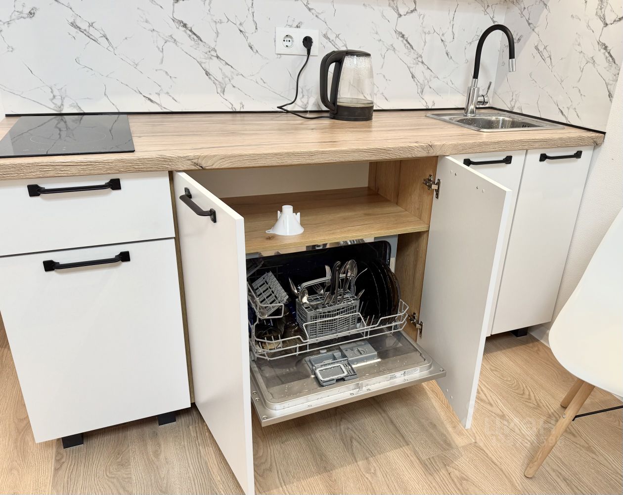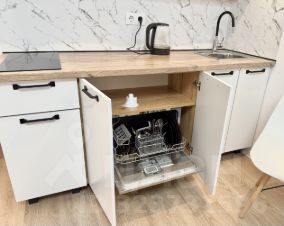 Оборудованная кухня, с посудомоечной машиной. Тихий холодильник, микроволновая печь.